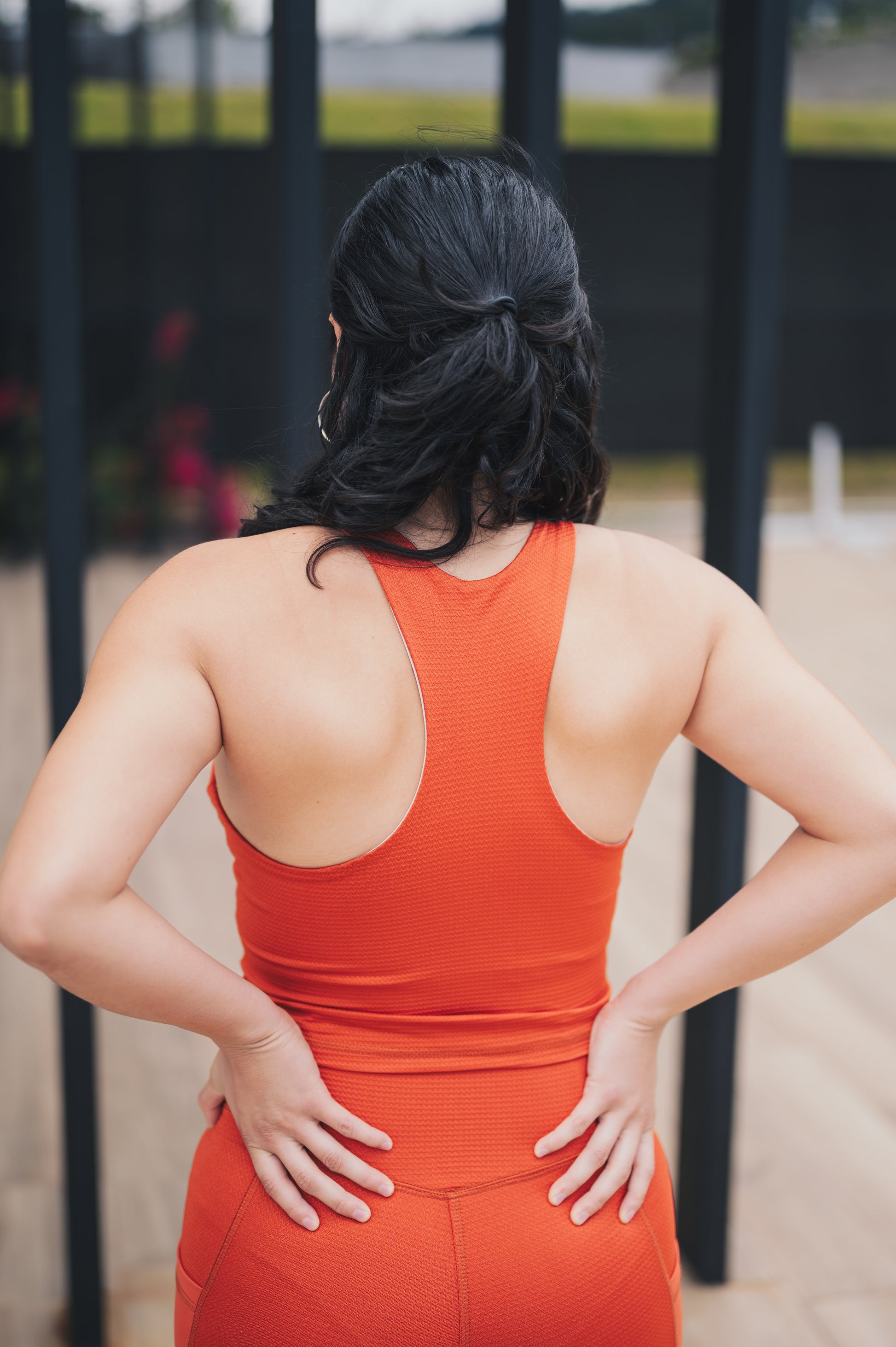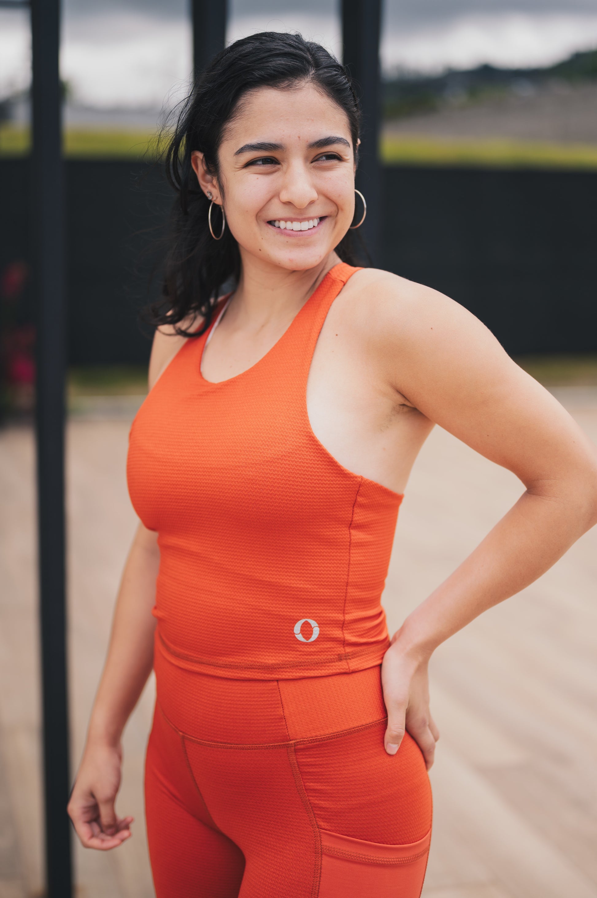 Crop top en textil suave y ligeramente brillante con top por dentro para dar mayor cobertura. Soporte medio.