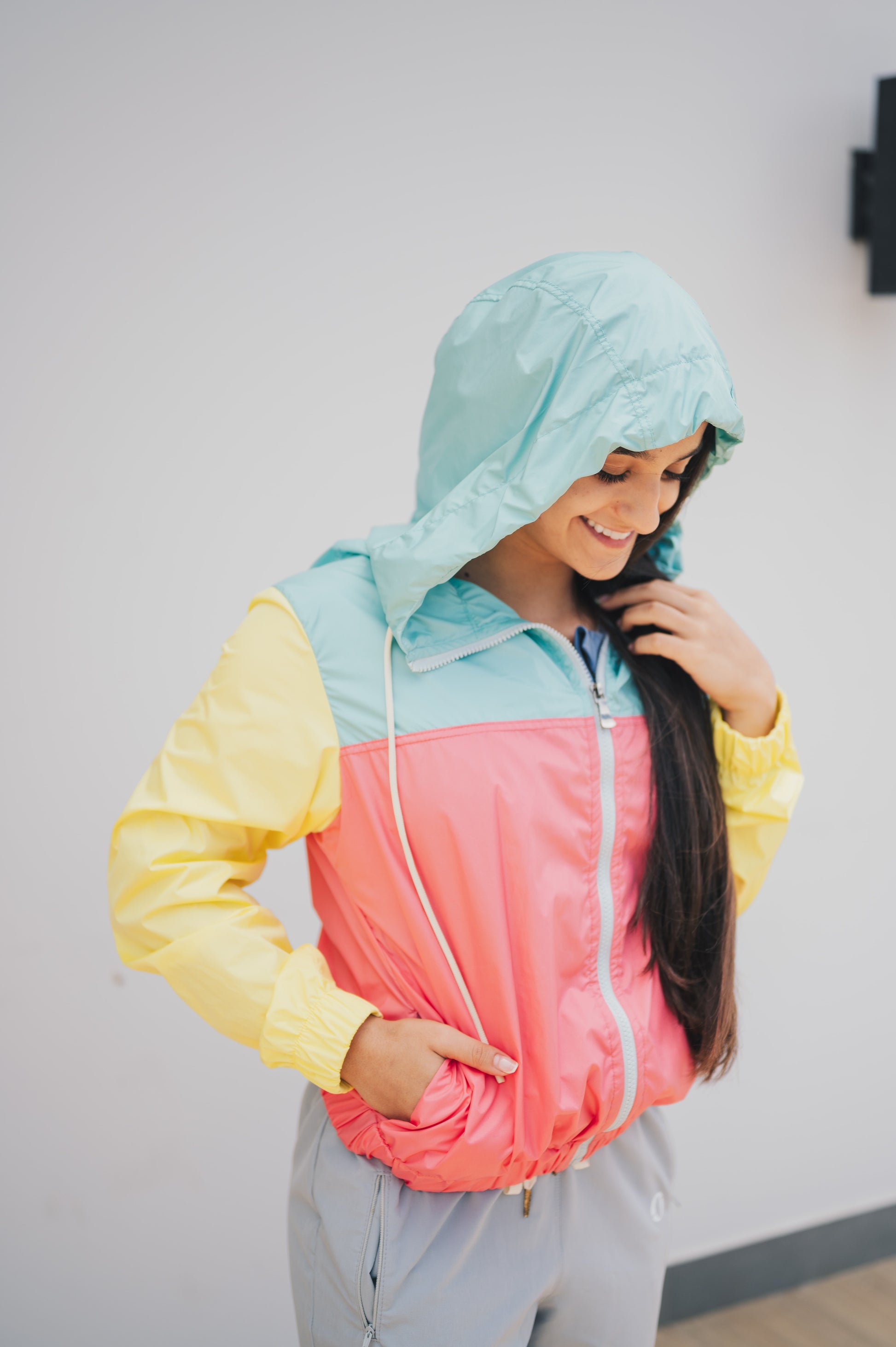 Jacket super liviana, con zipper al frente, bolsas a los lados y gorro con cordón ajustable.